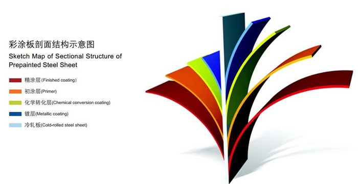 彩涂板剖面結(jié)構(gòu)示意圖-蘇州鋼杰彩板